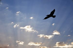 Sun Setting over Tangier with bird, Maghreb, Morocco, North Africa
